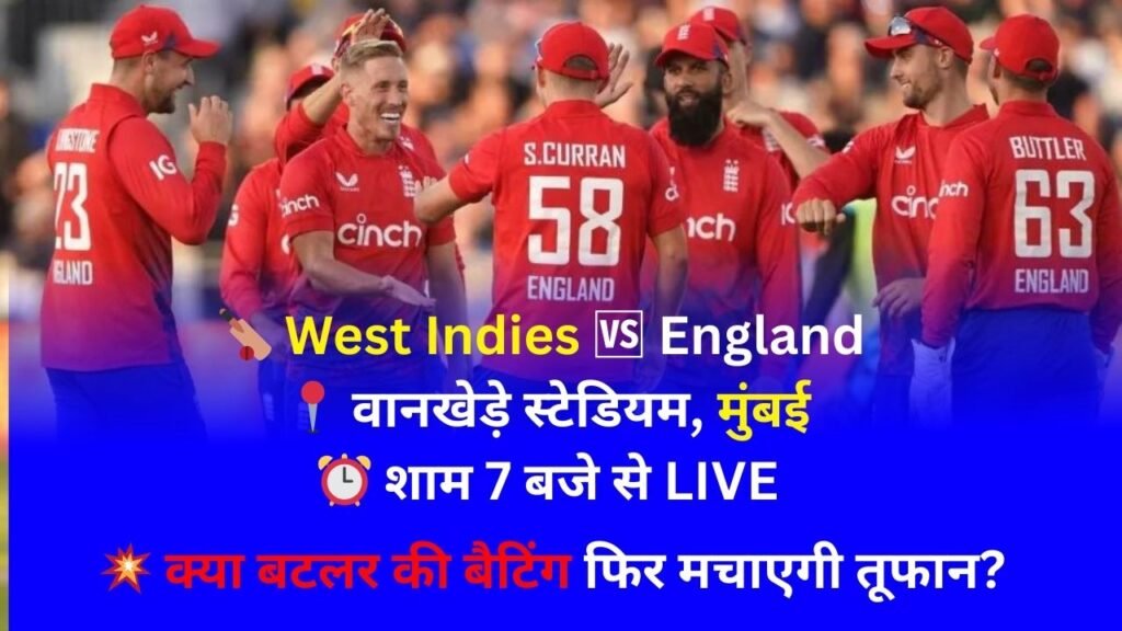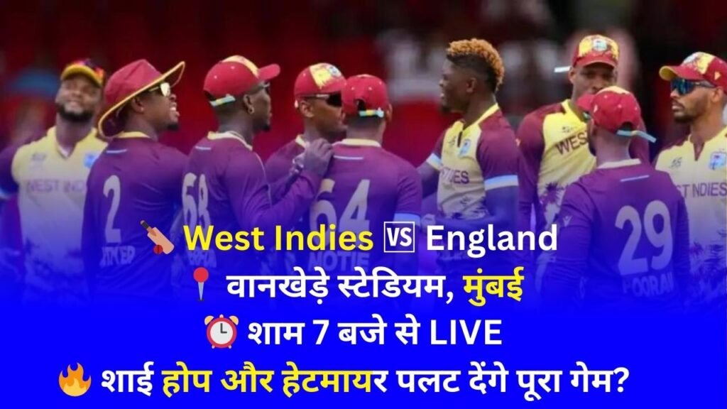 टी20 वर्ल्ड कप 2026 के ग्रुप-सी में आज एक बड़ा मुकाबला खेला जाएगा, जहां वेस्टइंडीज और इंग्लैंड की टीमें आमने-सामने होंगी। यह मैच मुंबई के ऐतिहासिक वानखेड़े स्टेडियम में शाम 7 बजे शुरू होगा, जबकि टॉस 6:30 बजे होगा।